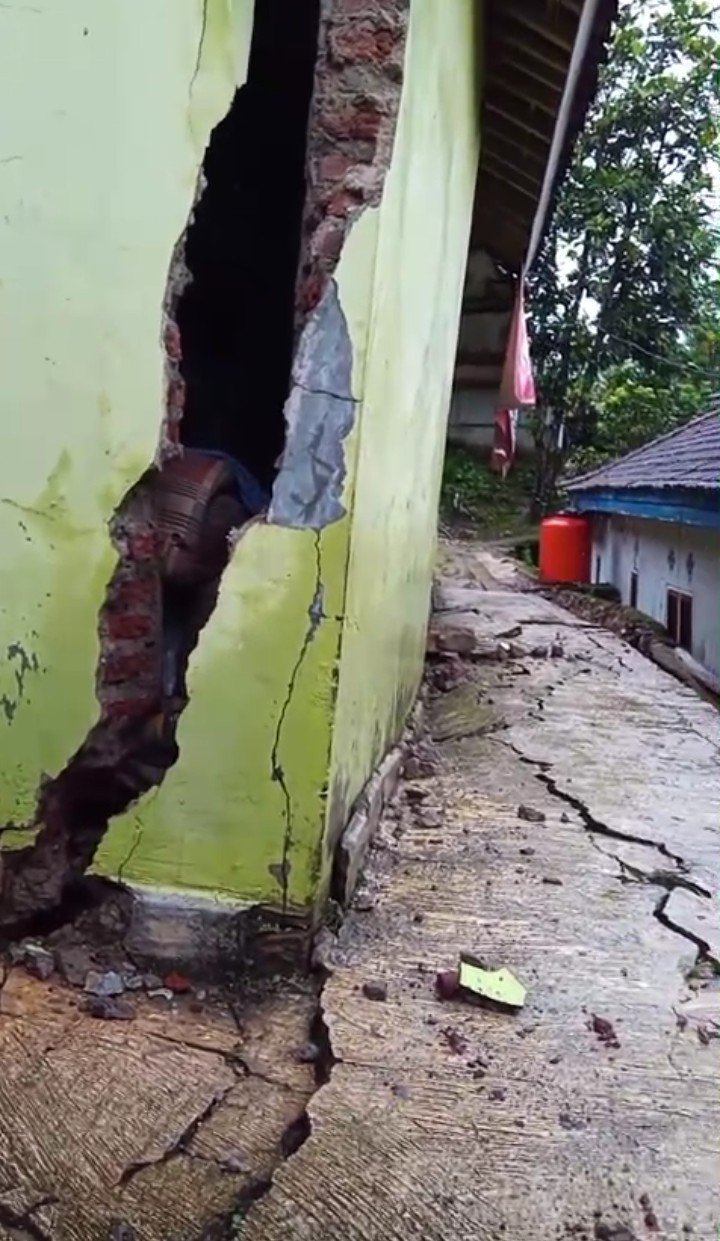 “Kami takut kalau hujan turun lagi, tanah bisa bergerak lebih parah. Retakan sudah masuk ke dalam rumah,” ujar salah seorang warga Kampung Gempol.