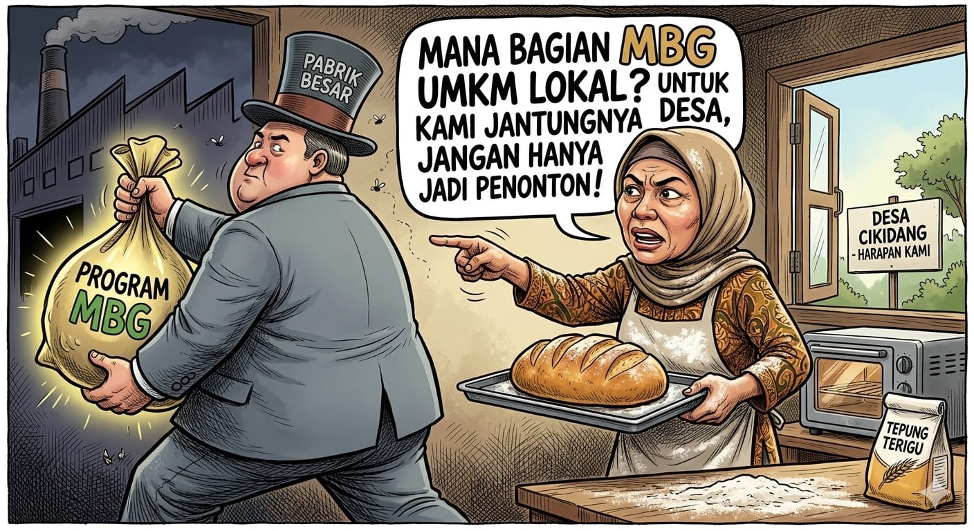 Hal inilah yang memicu kritik dari penggiat UMKM di Cikidang. Mereka menilai, pelibatan dapur umum atau pabrik skala besar dari luar wilayah justru mematikan kesempatan bagi produsen roti rumahan di Cikidang untuk ikut berkontribusi.