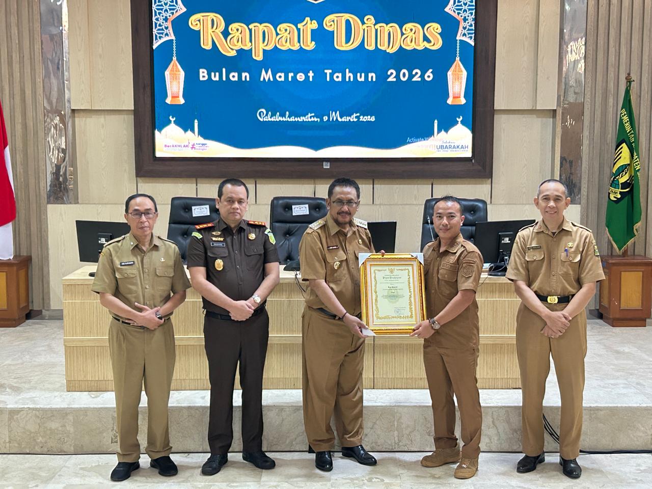 Penghargaan tersebut diserahkan di Aula Setda Kabupaten Sukabumi, Senin (9/3/2026).