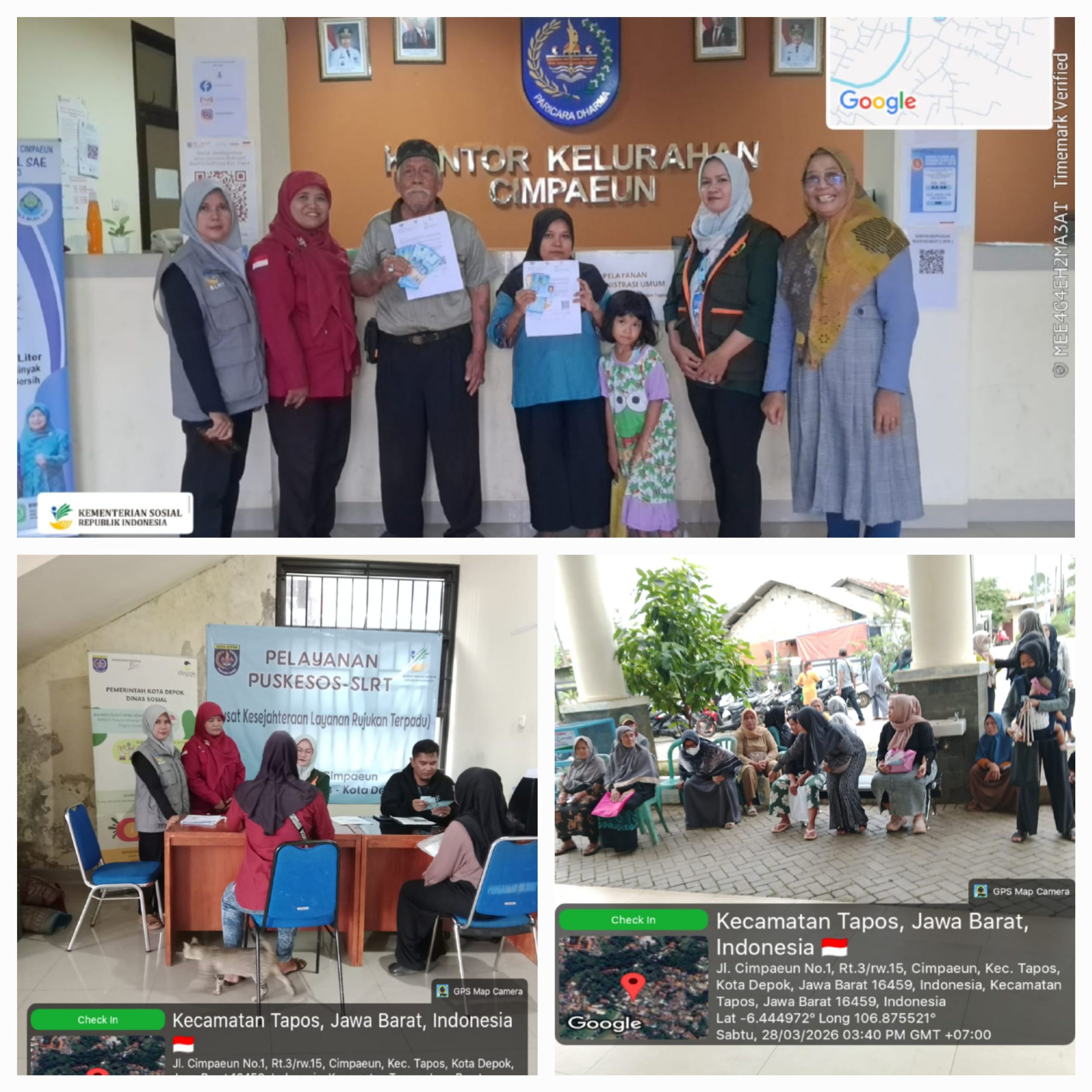 Garudanewss.com Depok – Penyaluran bantuan sosial (bansos) tahun 2026 di Kelurahan Cimpaeun, Kecamatan Tapos, Kota Depok, berlangsung tertib dan lancar. Kegiatan pembagian bantuan yang dipusatkan di kantor kelurahan ini disambut antusias oleh warga penerima manfaat.